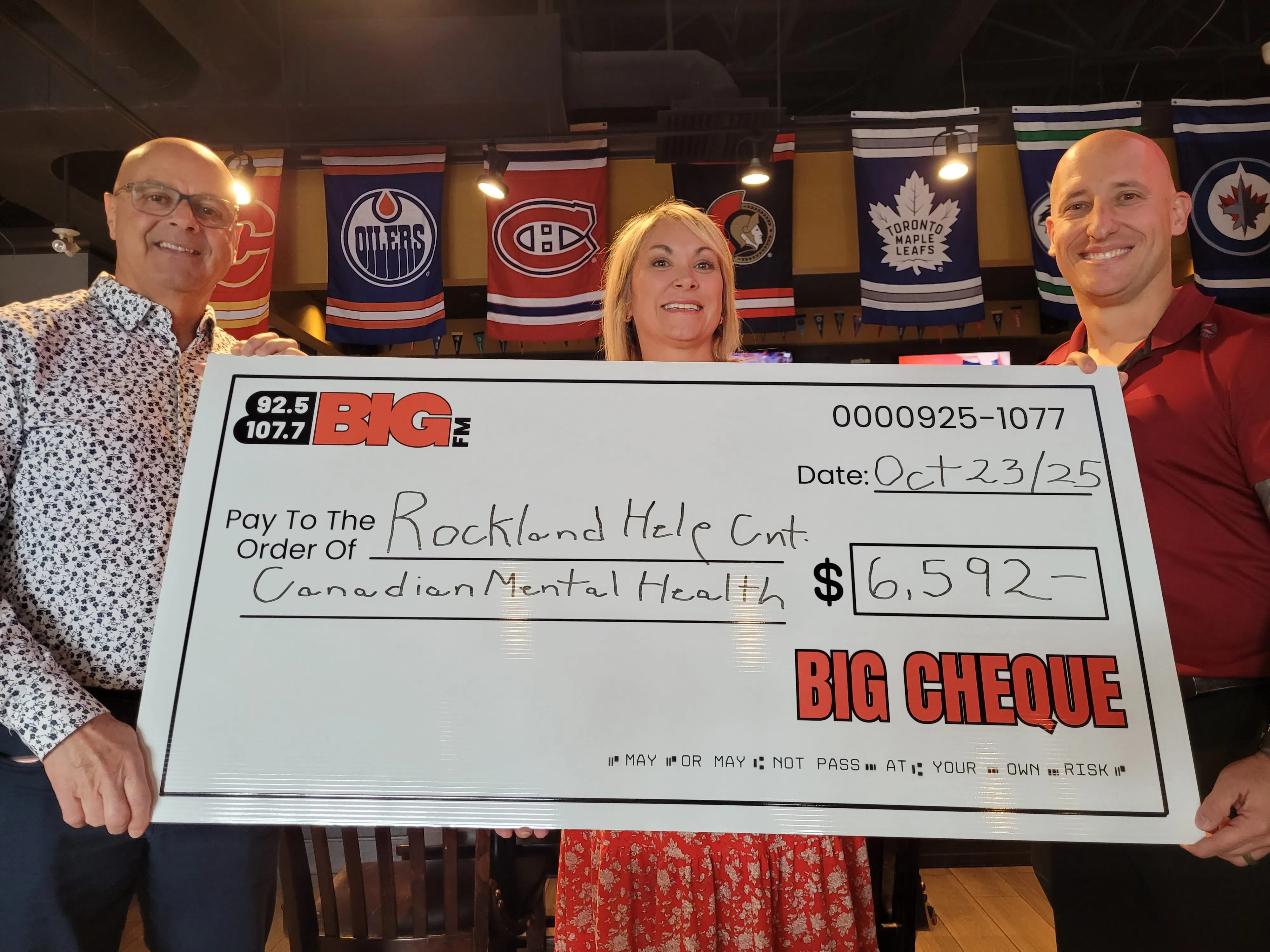 BIG-FM in conjunction with Broadway Bar & Grill Rockland handed over The BIG cheque to The Rockland Help Centre and Canadian Mental Health Champlain East.
